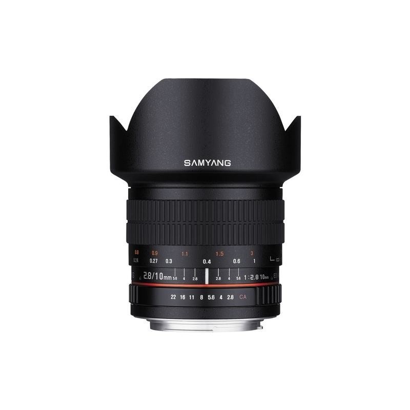 The Samyang 10mm f/2.8 ED AS NCS CS Lens is a prime, manual focus wide-angle lens designed specifically for use with APS-C-sized image sensors. Providing a 35mm-equivalent focal length of 16mm and a broad 105.9° angle of view, this lens is ideally suited for interior, architectural, and landscape photography applications.